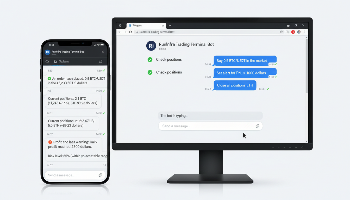 Полноценный трейдинг прямо из Telegram: сделки, позиции, риск и алерты в одном интерфейсе